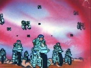 From the mountains to the desert. A few small towns are eking out a meager existence in the shadow of a huge Inbit transmission tower. Stick and the other rebels, still on their journey to Reflex Point, must find a way around or through the Inbit hive. Unfortunately, some members of the group have other things to deal with as well. Stick and Rey are captured by a local police force, and a local thief force steals their Ride Armors. Yellow and Aisha are taken in by some equipment wholesalers who just happen to be comrades of the thieves who stole Stick and Rey's Ride Armor. It turns out that these thieves are ex-Mars Base soldiers, who fought against Inbit right after they captured the Earth. They quit the service, they had seen too much war. By the time Stick finds the thieves, Yellow has heard their story and forgiven them for their cowardice. Stick does not forgive them so easily, they earn his respect only when they show up in a battle against the Inbit, when they sacrifice their lives to destroy the hive. It is a haunting episode, filled with duty, love, remorse, and forgiveness.