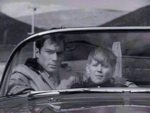 Tod and Buz give a lift to Lotti Montana, a migrant worker who is going to help pick the peach crop. As they approach the town of Sparrow Falls she begs them to drive through as quickly as possible. They take her to the Coronet Club and the Silver Dollar cafe. Sheriff Hingle keeps her from leaving town. The boys work with a revivalist. Filming Location: Needles, California