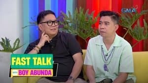 For today's talk, the issue of divorce between Rhian Ramos and Sam Versoza, and husband and wife Manny and Jinkee Pacquiao, will be investigated! Is Sunshine Dizon coming back to Kapuso Network? 'Luv Is: Caught in His Arms' boys Raheel Bhyria, Vince Maristela, Sean Lucas, and Michael Sager, participated in Tito Boy's 'Fast Talk'! Sofia Pablo and Allen Ansay, the question about the state of their relationship will be answered.