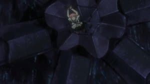 Kunihito apologizes to Kuniko for his apparent betrayal, holding her off while Ryoko escapes to the Eternal Forest with Mikuni. Enraged, Kuniko attacks Kunihito, only to be stopped by Momoko who arrives to tell Kuniko of Kunihito's true motives. It's revealed that Sayoko survived her fall from the upper deck because Momoko intercepted her descent. Ryoko arrives in the chamber once occupied by Hiruko, revealing a hidden passageway into the bowels of Atlas itself. Shogo, Leon, and Sion attempt to stop her, but she eludes them and they descend down through the shaft. Sayoko is quick to follow. She voices Ryoko's motives in forcing Mikuni to become the successor. She attacks Ryoko, but is ultimtely knocked off the descending platform, presumably falling to her death. Nagiko and Talsian are seek talking about the hidden catacombs they discovered during Atlas's construction and the secret behind the forbidden relics they uncovered down there. The secret behind Zeus's creation is finally revealed, as well as the system protecting Atlas from violent oscillations and tremors. Back up in the ceremonial chamber, Kuniko and Kunihito finally manage to break through the barrier to the elevator shaft Ryoko took. Kuniko hugs Momoko and Kunihito apologizes for his actions. Kuniko playfully scolds him, saying he apologizes too much, before leaving down the shaft. Meanwhile, Karin is desperately struggling to stop MEDUSA's rampage across the economic markets. Talsian appears on the terminal and declares a way to stop MEDUSA. A rather comical chibi battle ensues and Karin is knocked into a separate field, greeted by the teddy forms of her parents, who reveal the real reason as to their extended absence. It's only a virtual program operated by Ryoko, but it turns out that Karin's parents had died three years before. Karin suffers a breakdown and Ryoko returns to reality to command Mikuni to draw the bejeweled spear and assume her role as successor. Mikuni, however, refuses, but after threats from Ryoko, obliges reluctantly. By now, MEDUSA is about to decimate the world's economy and Kuniko arrives just in time to stop Mikuni from pulling out the spear.