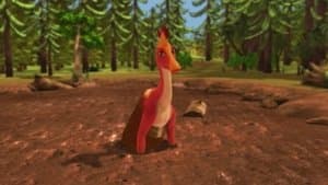 At the Big Pond, Tank introduces the Pteranodon family to his friend, Stacie Styracosaurus, a fellow Ceratopsian with a crown of elaborate horns on her head. Everyone attends Stacie’s “Hornucopia” celebration, where she reveals her new big