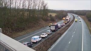 A horrific crash causes ruched hour chaos on the Great North Road, and traffic inspectors launch a crackdown on distracted lorry drivers. Also, the bumpy mission to deliver a herd of camels up the A1 to a city's Christmas nativity.