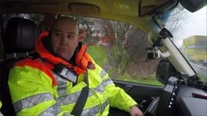 An A1 patrol officer gate called to help a biker fighting for his life. Traffic officers come face-to-face with a lorry driver flouting the law, and a boat transporter is marooned after a puncture halts the journey.