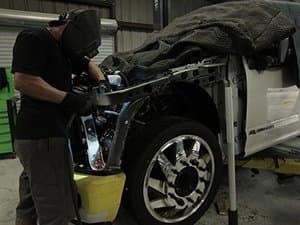 Bill and the guys transform a wrecked 2017 Ford F-150, turning the hunk of parts into an angry-looking, one-of-one prerunner; the crew builds a custom air suspension bike trailer for a longtime customer.