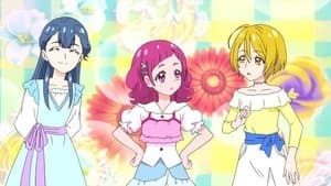 To celebrate the three of them becoming Pretty Cure, Hana and her teammates decide to head to a DIY store that her father manages. After they learn that the staff at the floral section is shorthanded due to the cold, they use the Mirai Pad to become florists to help out. Hana struggles at first and seeing Saaya holding a bunch of flowers reminds her of something she can't quite figure out. Meanwhile, Harry and Hugtan go look around the store and when she is taken out of her carrier, Hugtan ends up running off in another child's cart and gets lost. Will the Cures be able to find her?